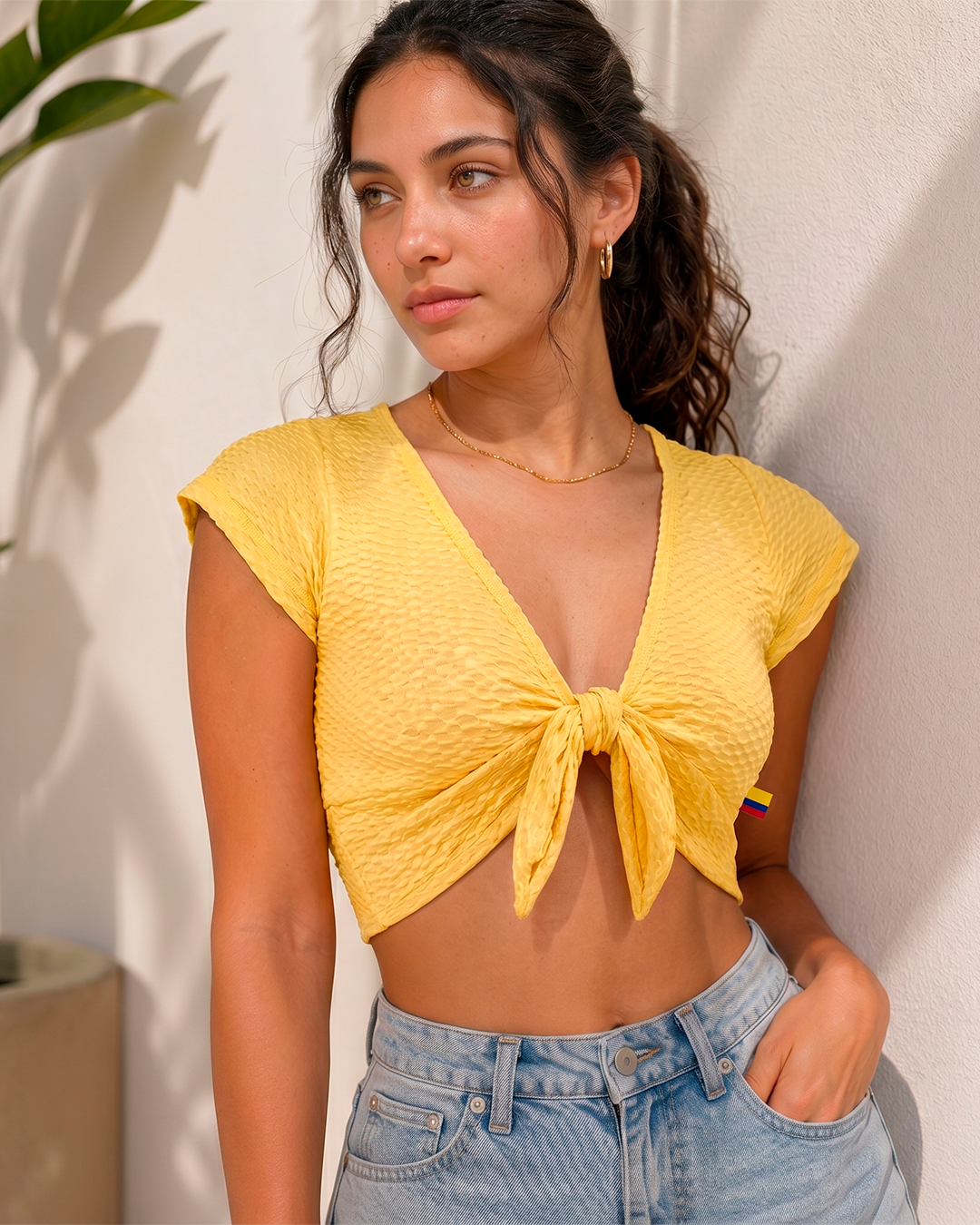 Imagina esa sensación de llevar una prenda que, con solo ponértela, te sube el ánimo y te hace sentir increíblemente sexy y segura. Este top es tu dosis de sol instantánea. No importa con qué lo combines, su energía vibrante te garantiza que serás el centro de todas las miradas.